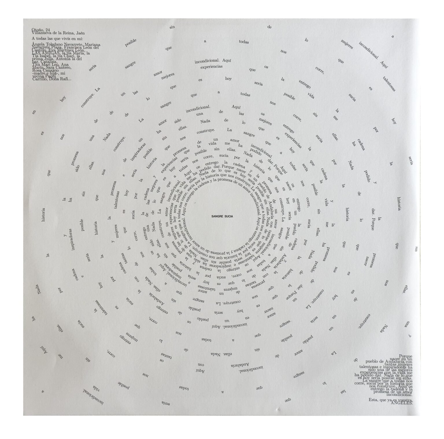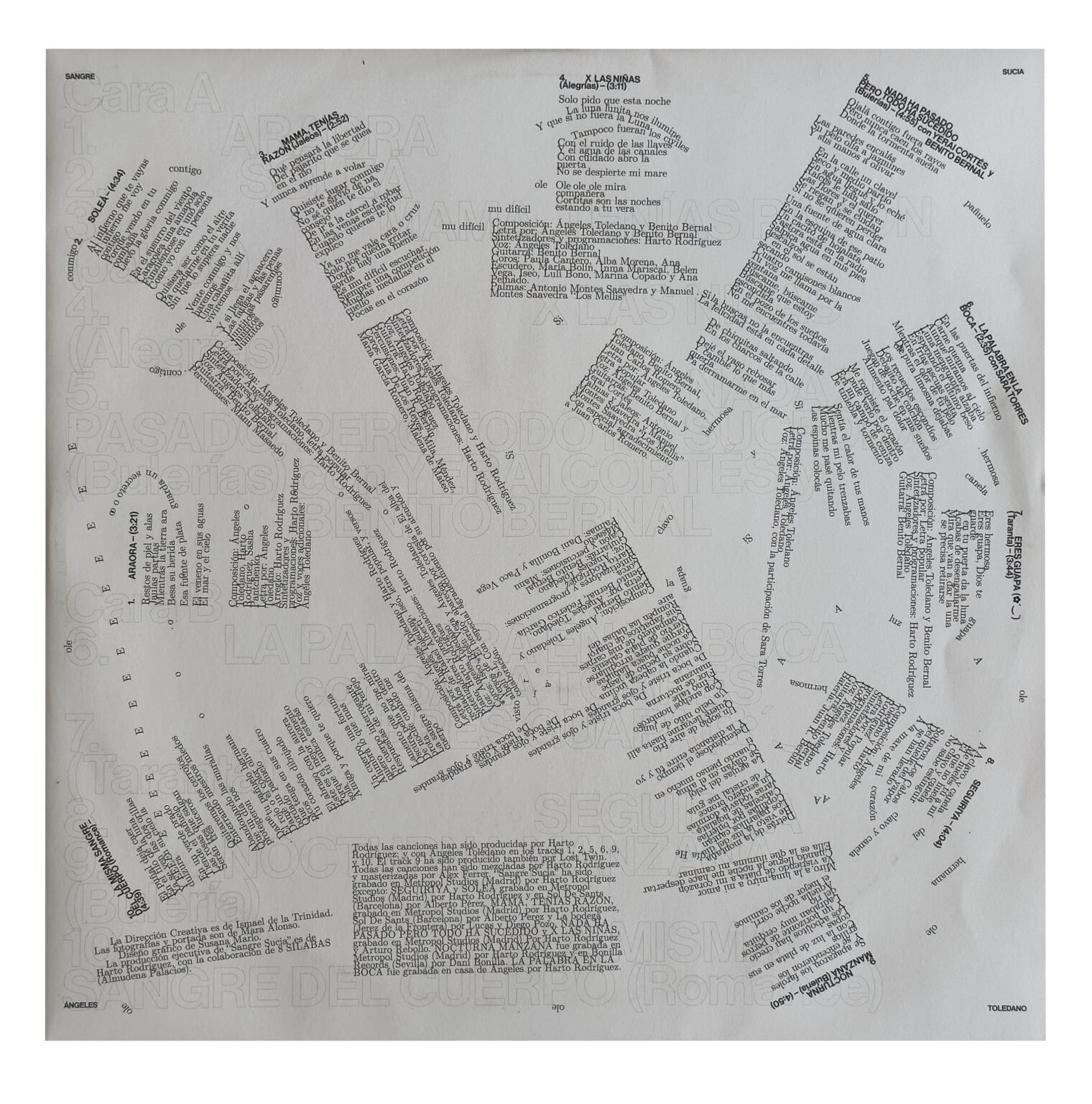 Mi trabajo con Ángeles Toledano parte de una necesidad mutua: encontrar una nueva forma de contar el flamenco. Para Sangre Sucia, su primer disco, diseñé junto a ella una identidad visual y narrativa que acompañara la fuerza cruda de su propuesta, sin suavizarla ni decorarla. Hablamos del cante como herida, como carga y como desafío.